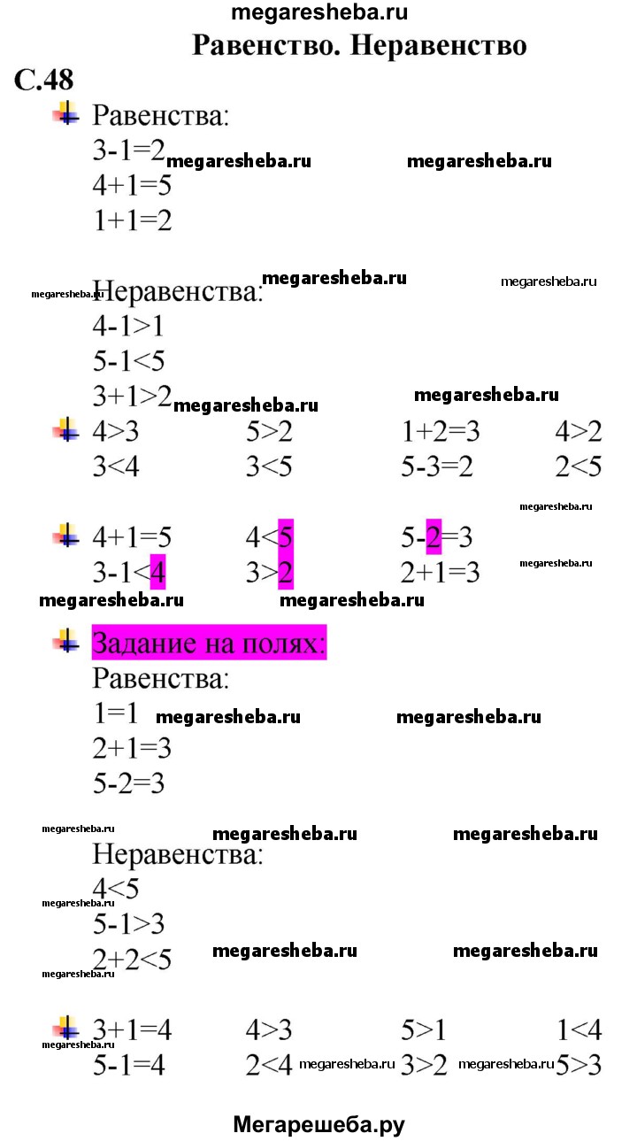 ГДЗ по математике 1 класс Моро часть 1 - стр.48