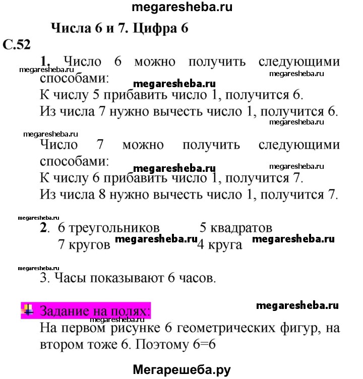 ГДЗ по математике 1 класс Моро часть 1 - стр.52