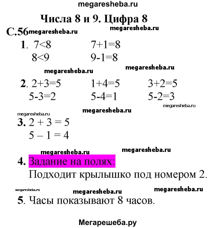 ГДЗ по математике 1 класс Моро часть 1 - стр.56