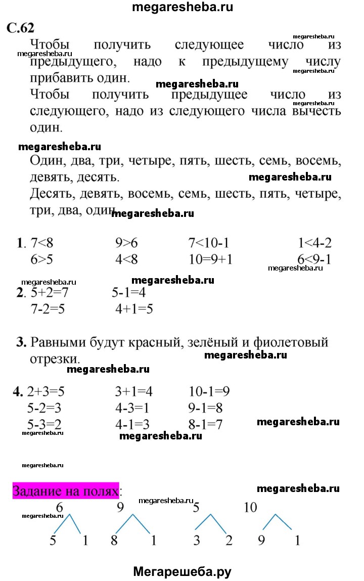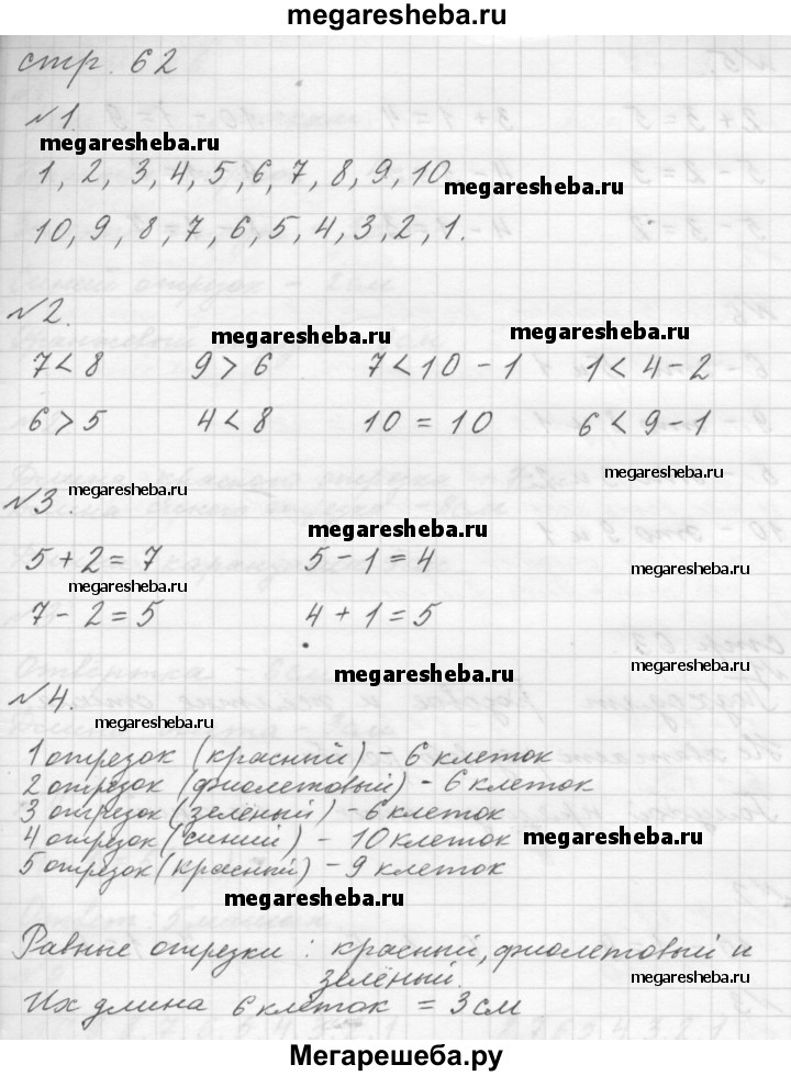 ГДЗ по математике 1 класс Моро часть 1 - стр.62