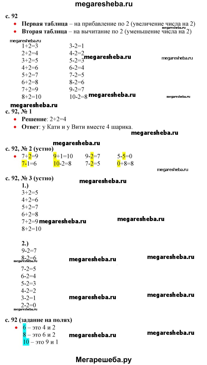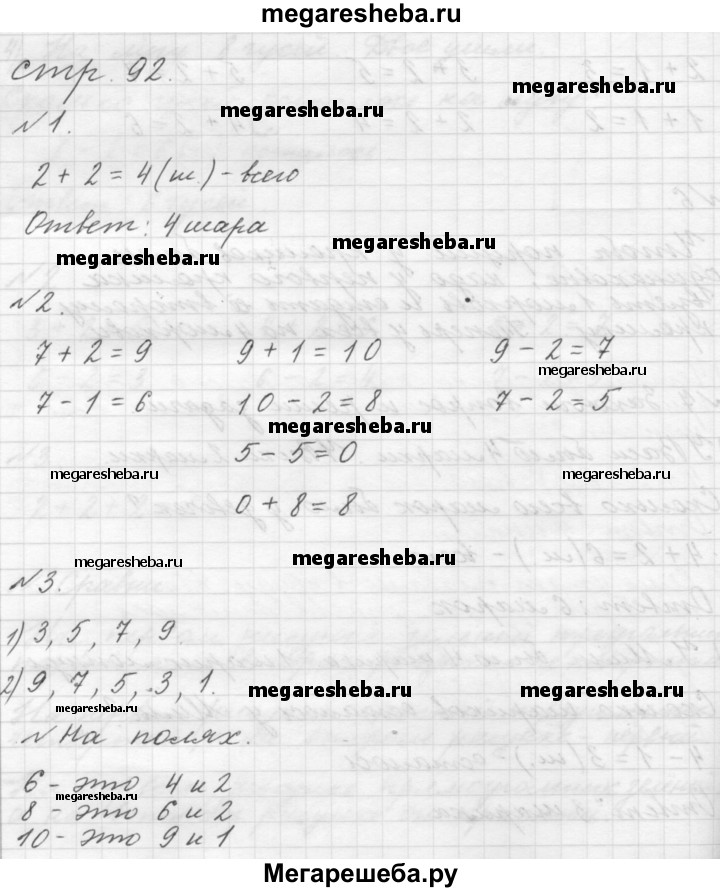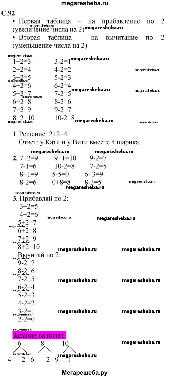 ГДЗ по математике 1 класс Моро часть 1 - стр.92