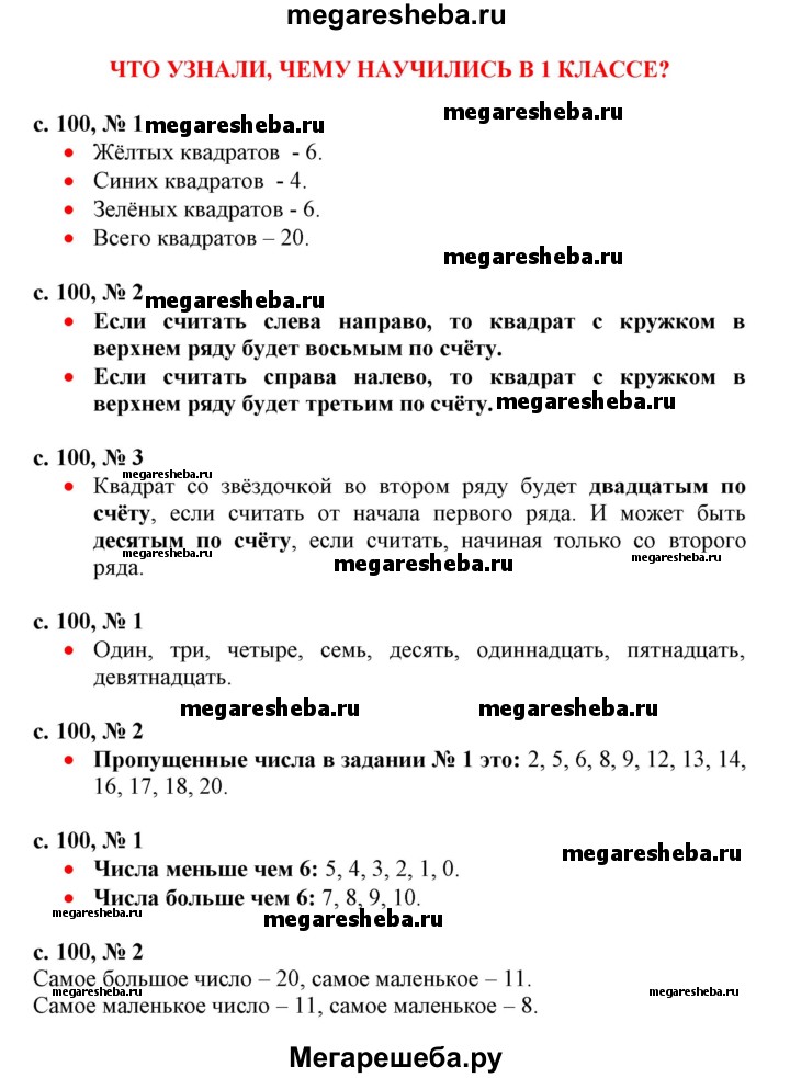 ГДЗ по математике 1 класс Моро часть 2 - стр.100
