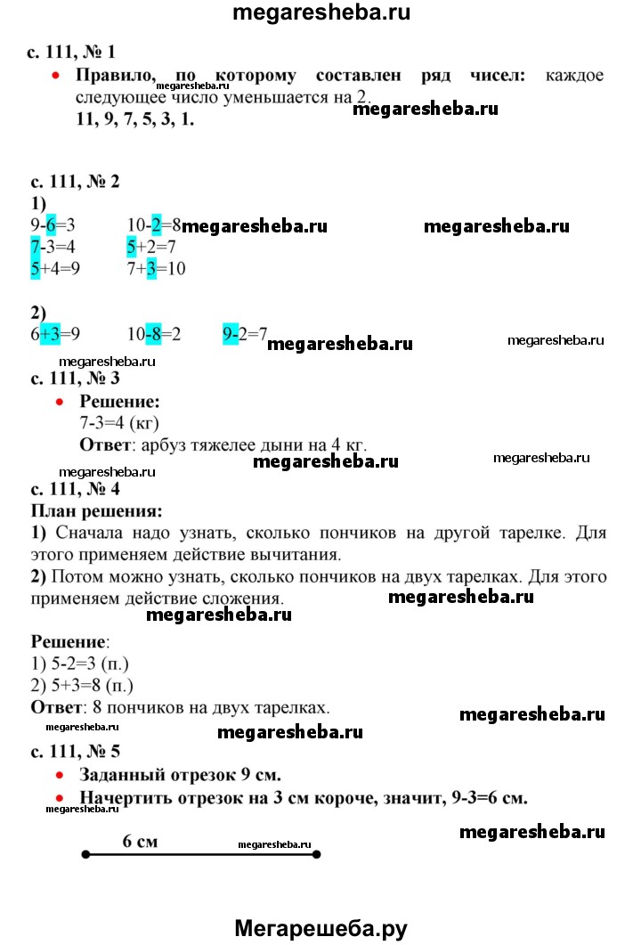 ГДЗ по математике 1 класс Моро часть 2 - стр.111