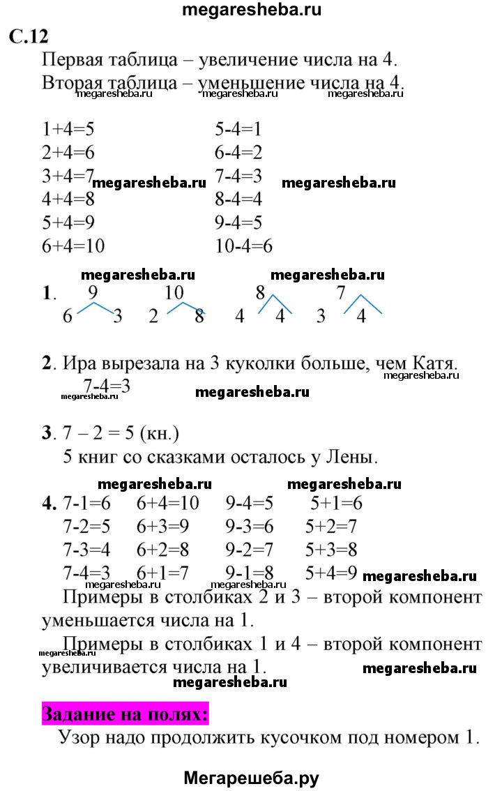 Подробный решебник (ГДЗ) по Математике за 1 (первый) класс - готовый ответ часть 2 - стр.12. Авторы учебника: Моро, Волкова, Степанова. Издательство: Просвещение 2016-2025.