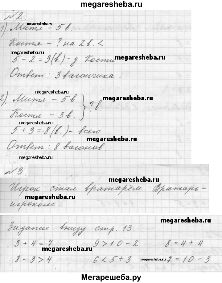 Подробный решебник (ГДЗ) по Математике за 1 (первый) класс - готовый ответ часть 2 - стр.13. Авторы учебника: Моро, Волкова, Степанова. Издательство: Просвещение 2016-2025.
