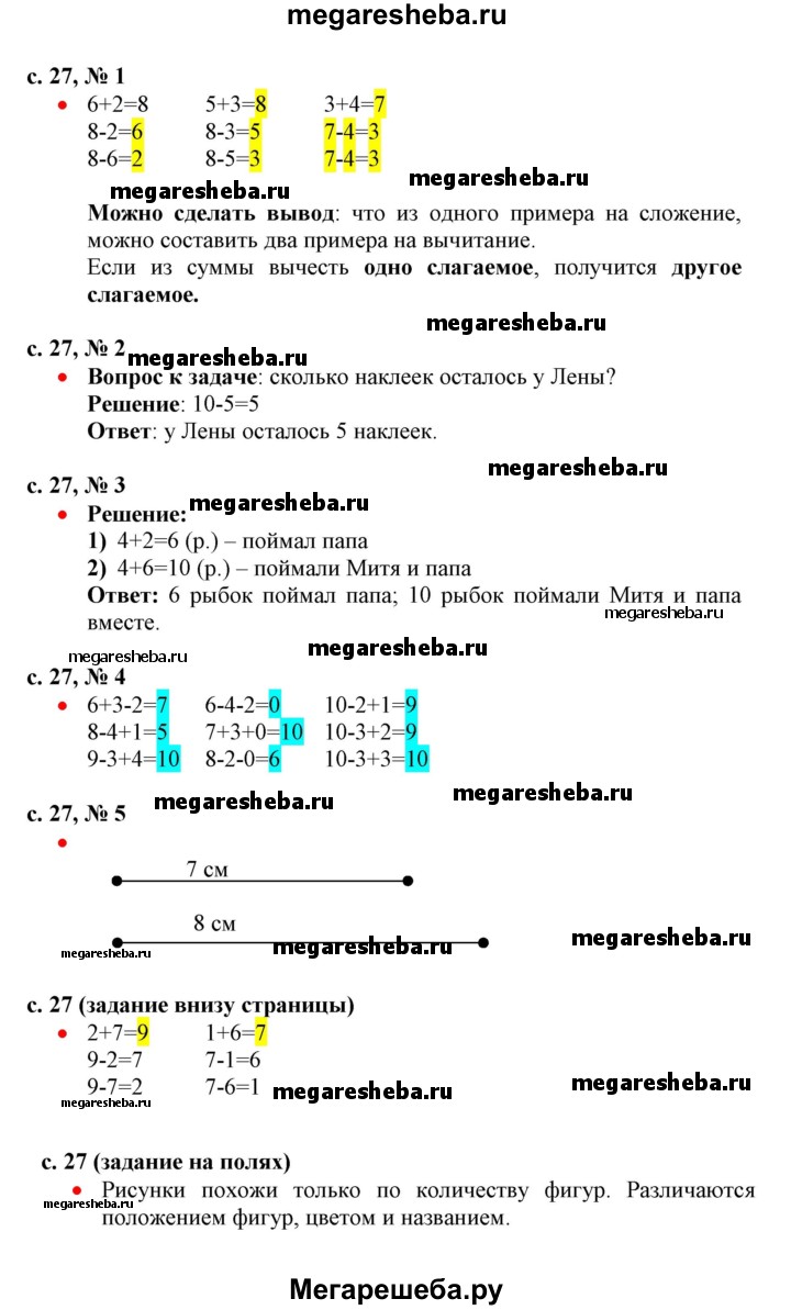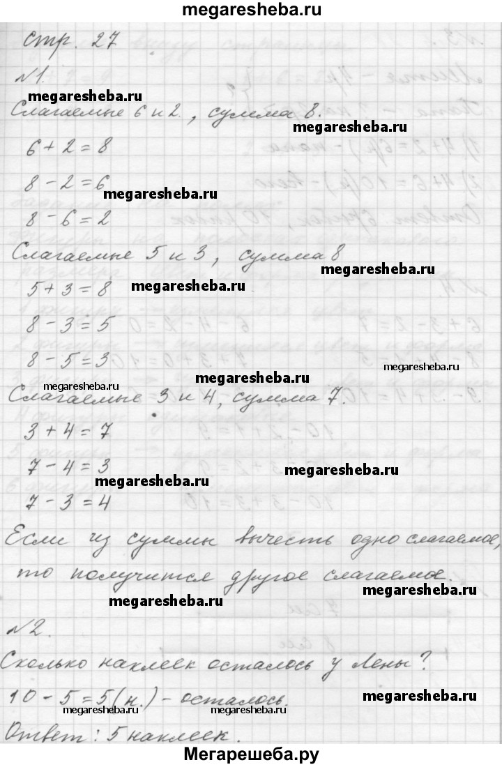 ГДЗ по математике 1 класс Моро часть 2 - стр.27