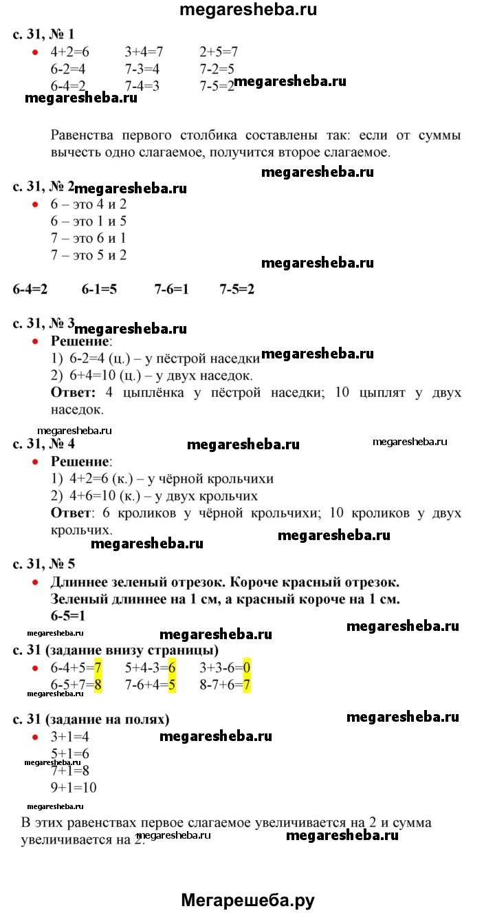 ГДЗ по математике 1 класс Моро часть 2 - стр.31