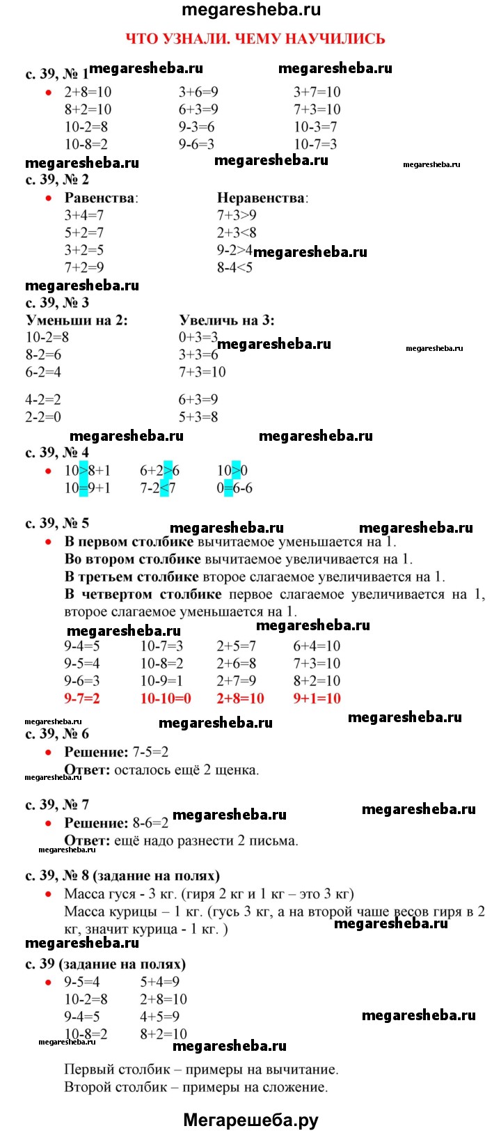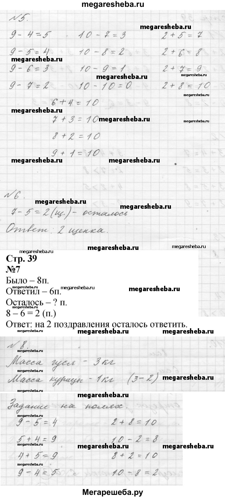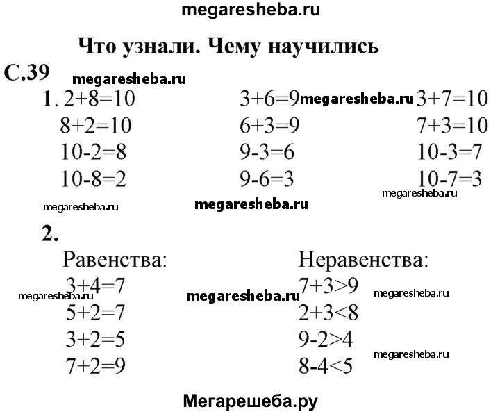 ГДЗ по математике 1 класс Моро часть 2 - стр.39