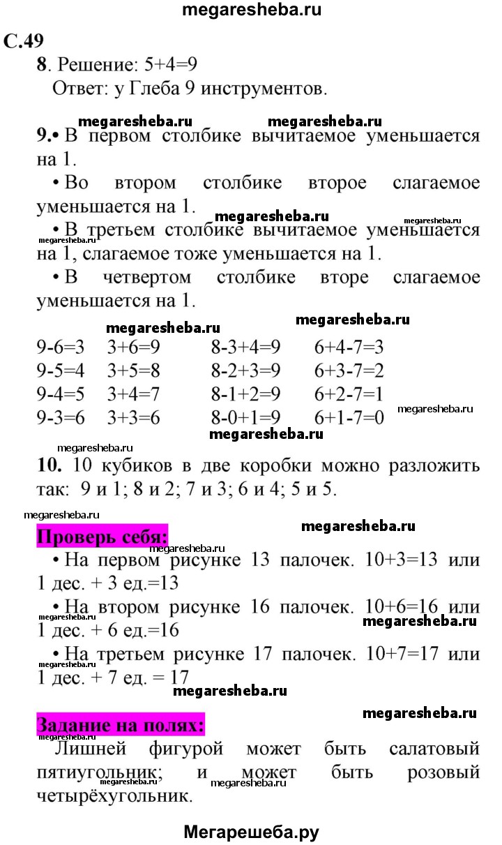 ГДЗ по математике 1 класс Моро часть 2 - стр.49