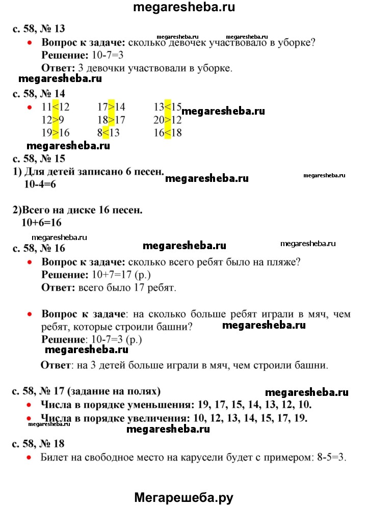 ГДЗ по математике 1 класс Моро часть 2 - стр.58