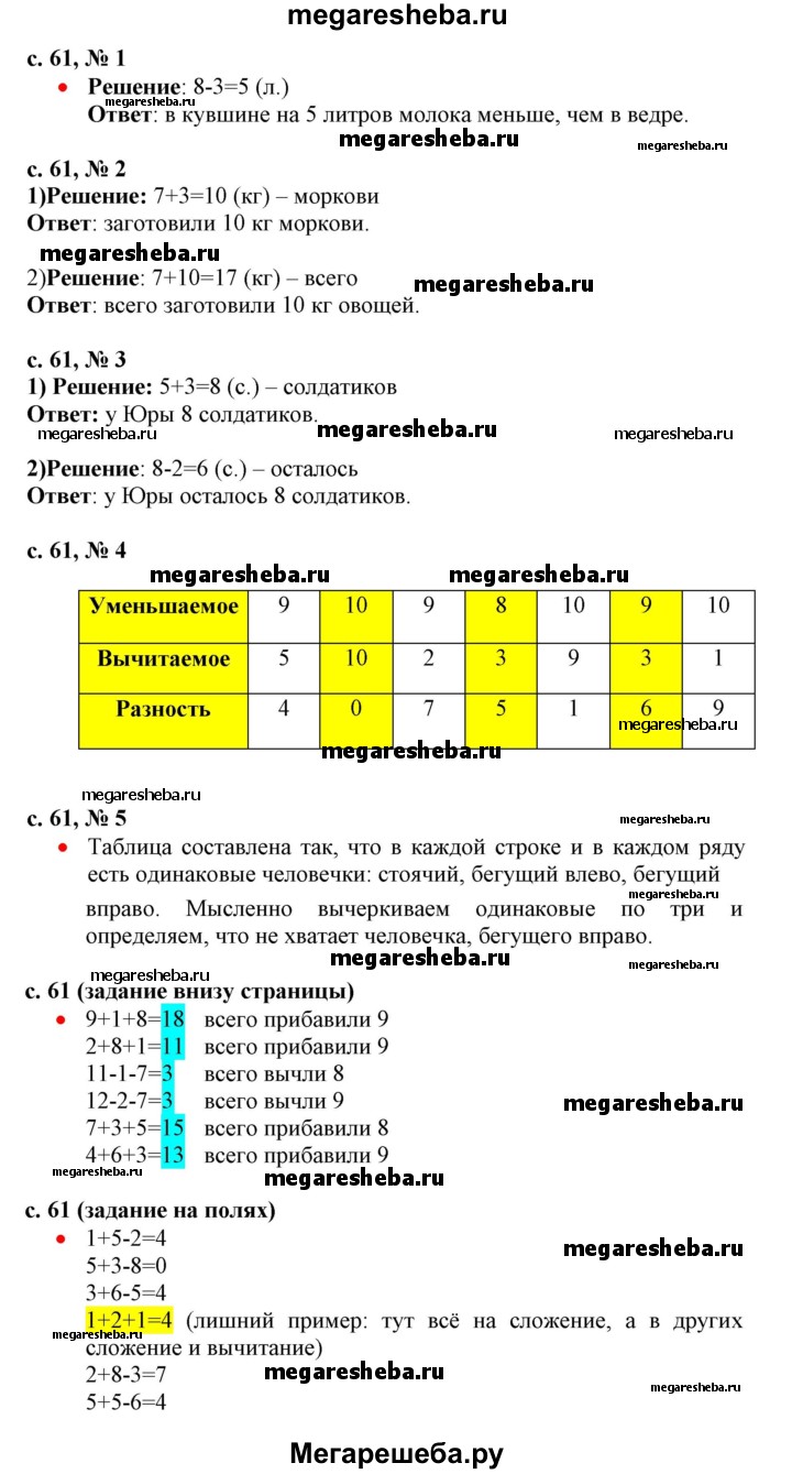 ГДЗ по математике 1 класс Моро часть 2 - стр.61