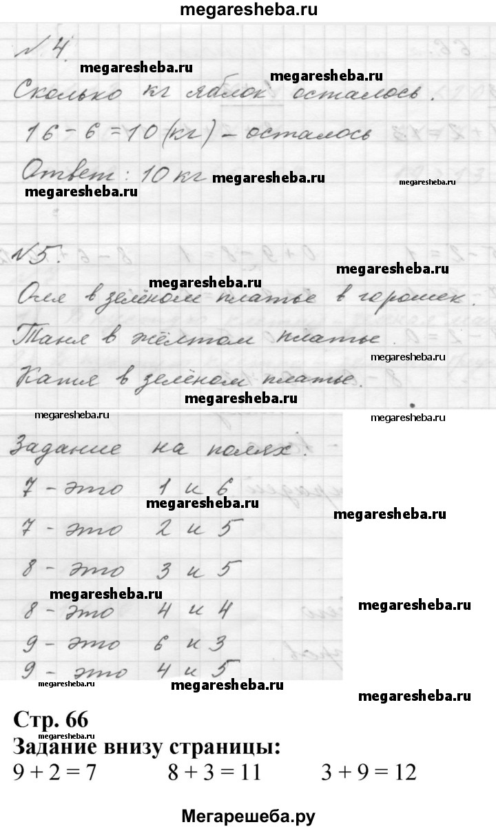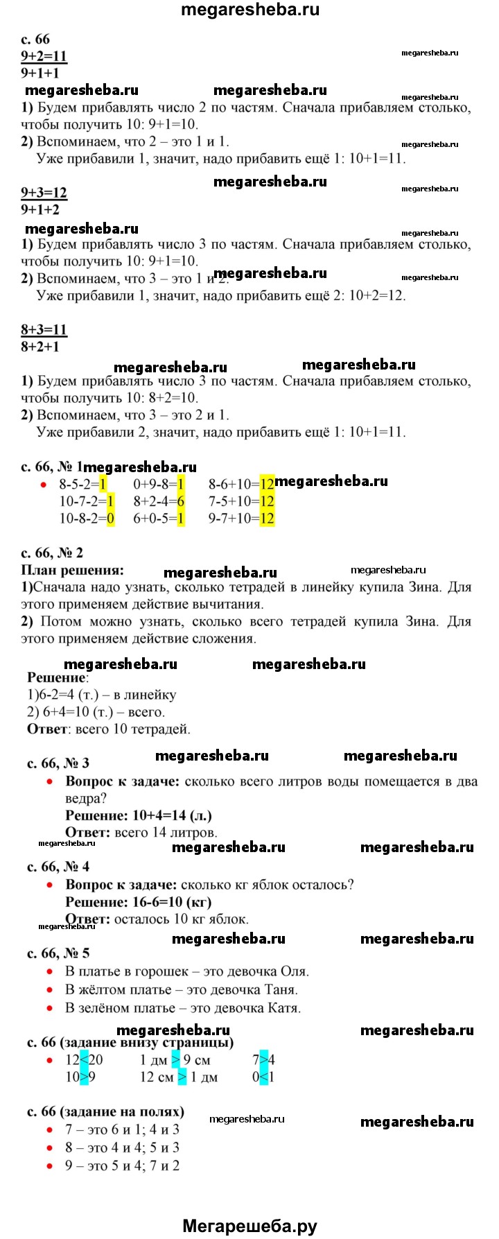 ГДЗ по математике 1 класс Моро часть 2 - стр.66