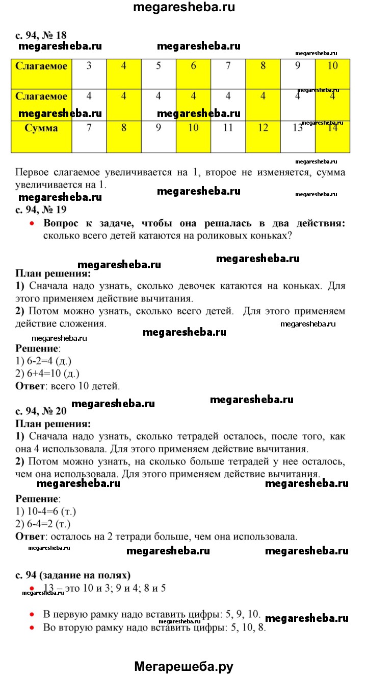 ГДЗ по математике 1 класс Моро часть 2 - стр.94
