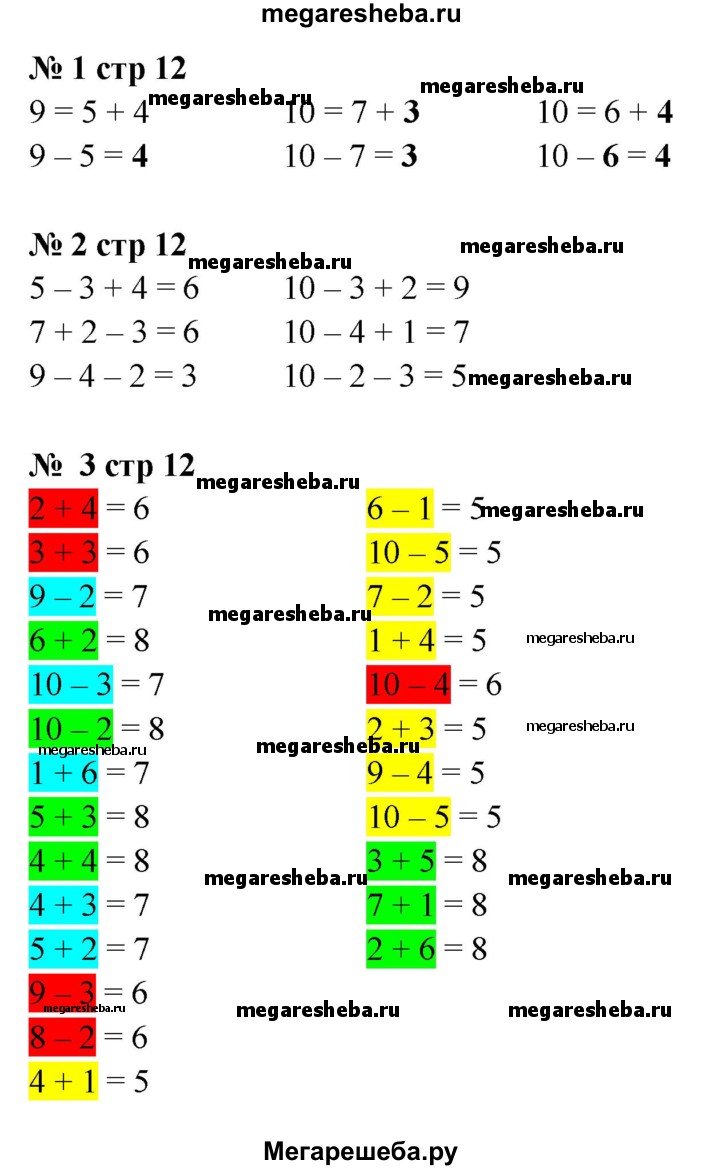 ГДЗ по математике 1 класс Моро рабочая тетрадь часть 2. страница - 12
