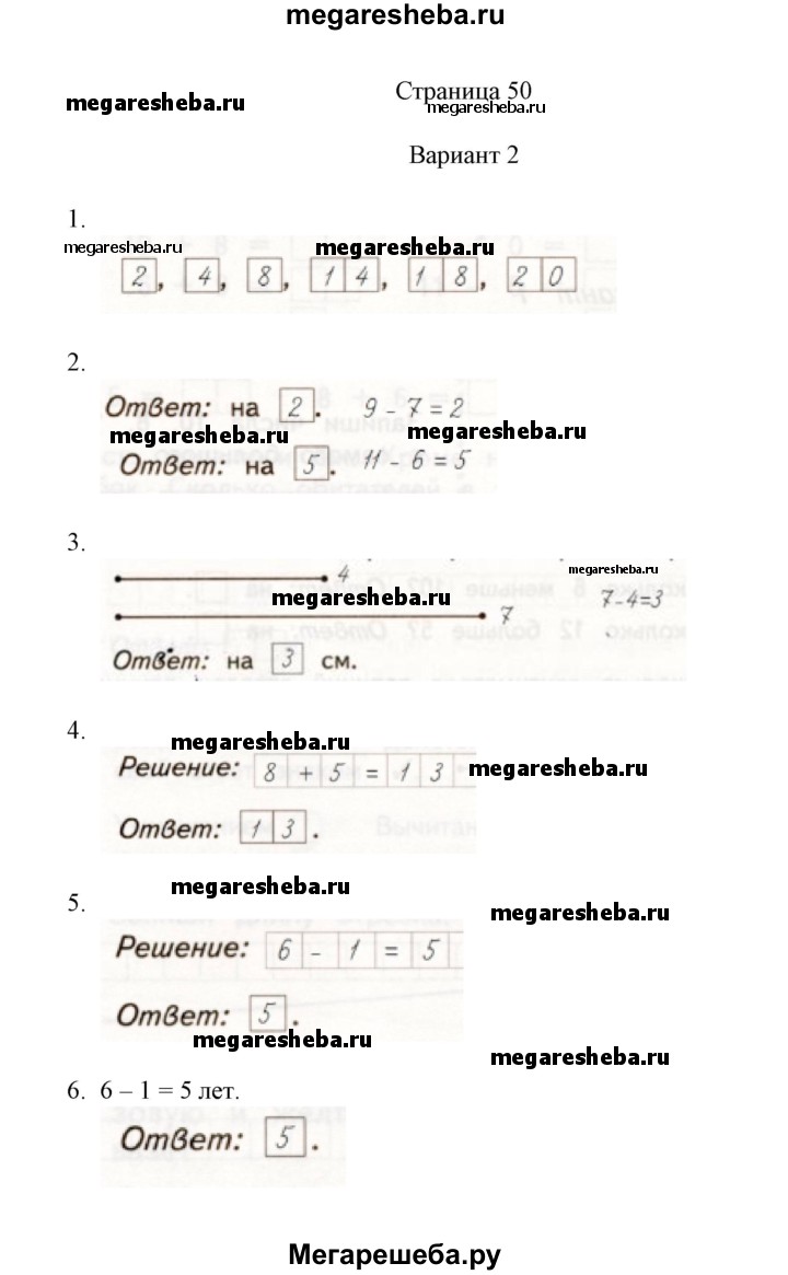 Подробный решебник (ГДЗ) по Математике за 1 (первый) класс тетрадь для проверочных работ - готовый ответ проверочная работа 4 - работа 1 (вариант) - 2. Авторы учебника: Рудницкая. Издательство: Вентана-граф 2020-2023.