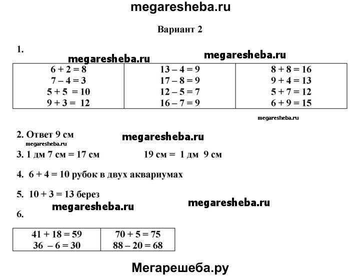 ГДЗ по математике 1 класс Рудницкая тетрадь для проверочных работ годовая проверочная работа (вариант) - 2