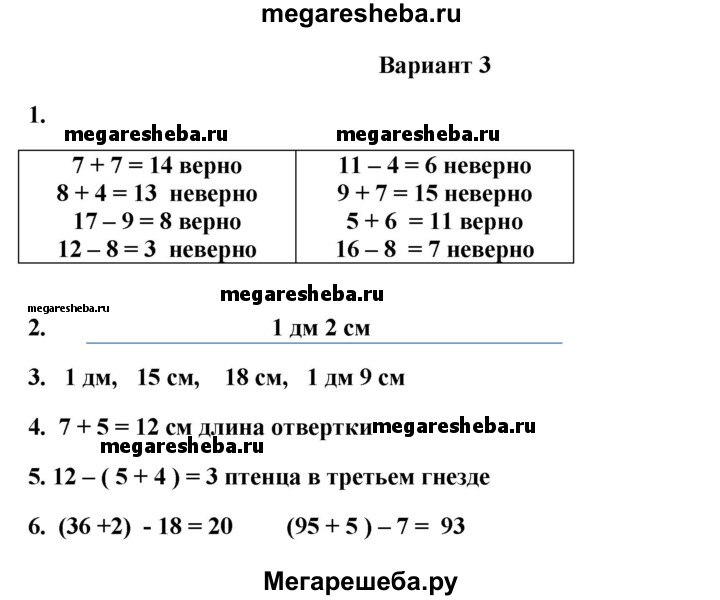 ГДЗ по математике 1 класс Рудницкая тетрадь для проверочных работ годовая проверочная работа (вариант) - 3
