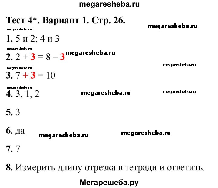 Подробный решебник (ГДЗ) по Математике за 1 (первый) класс тесты - готовый ответ страница - 26. Авторы учебника: Волкова. Издательство: Просвещение 2016-2023.
