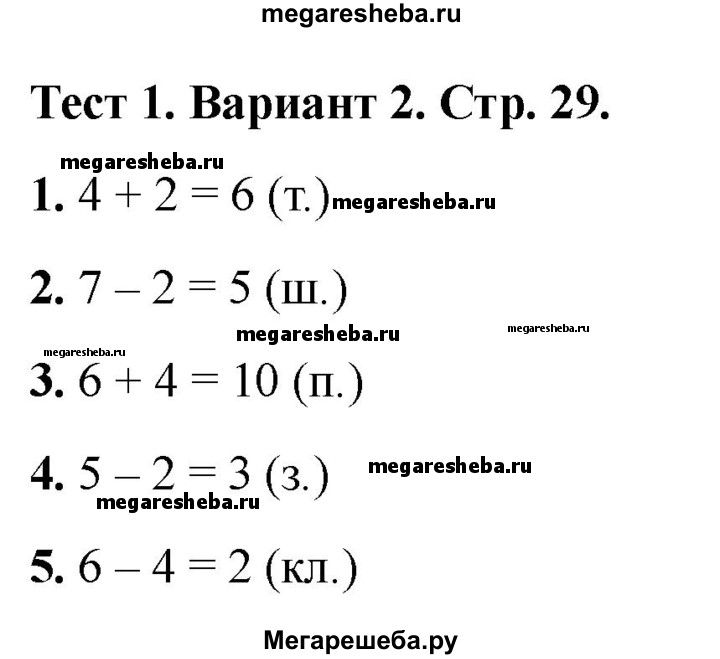 Подробный решебник (ГДЗ) по Математике за 1 (первый) класс тесты - готовый ответ страница - 29. Авторы учебника: Волкова. Издательство: Просвещение 2016-2023.