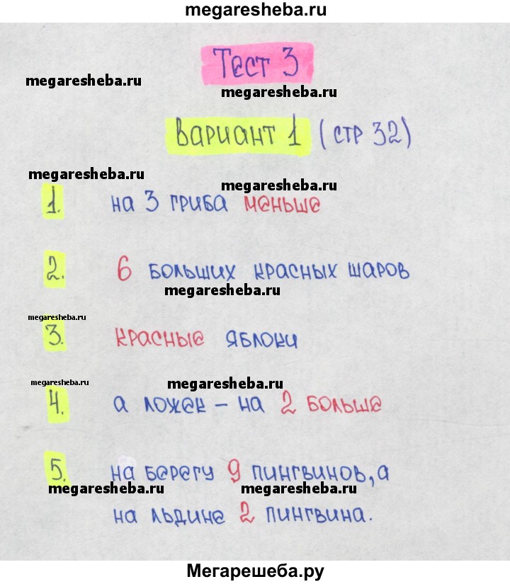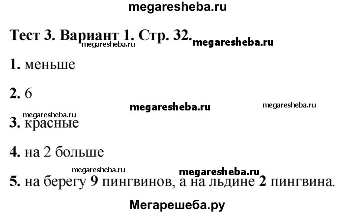 Подробный решебник (ГДЗ) по Математике за 1 (первый) класс тесты - готовый ответ страница - 32. Авторы учебника: Волкова. Издательство: Просвещение 2016-2023.