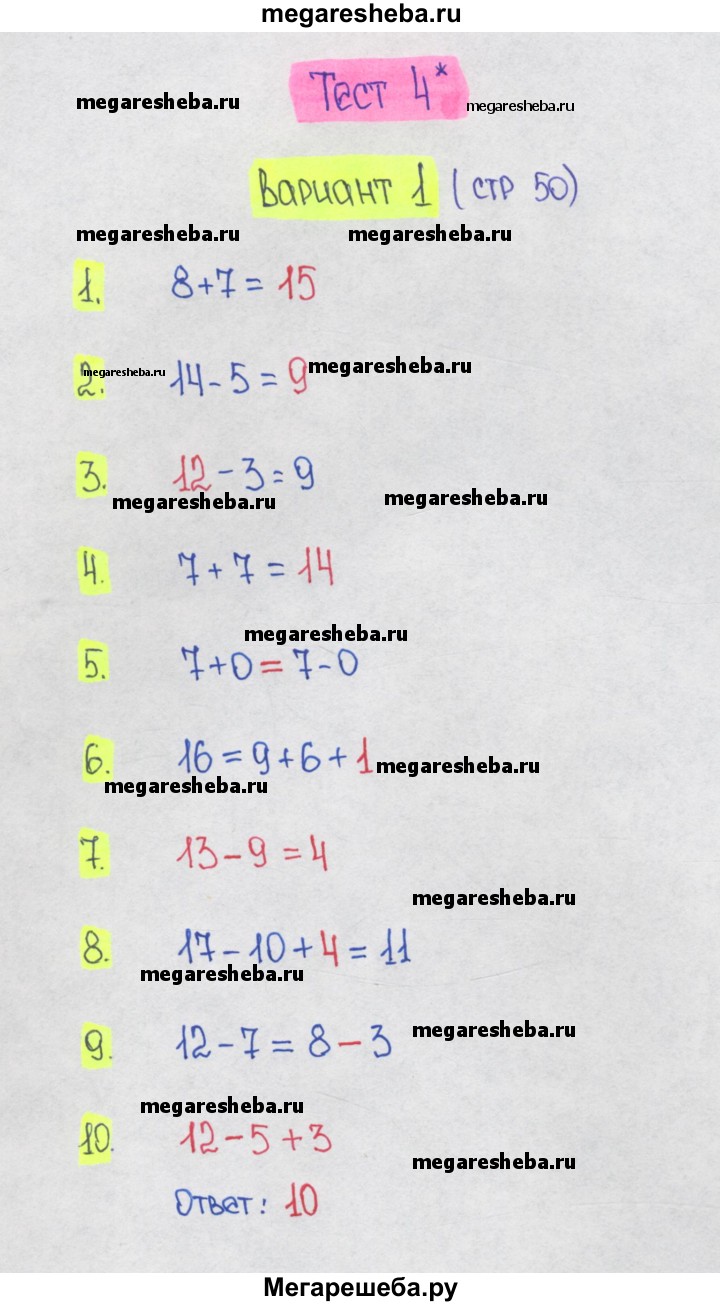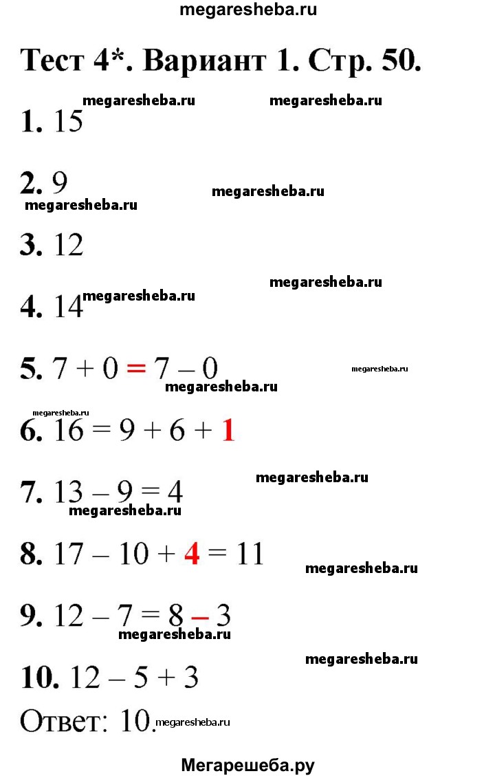 ГДЗ по математике 1 класс Волкова тесты страница - 50