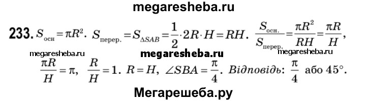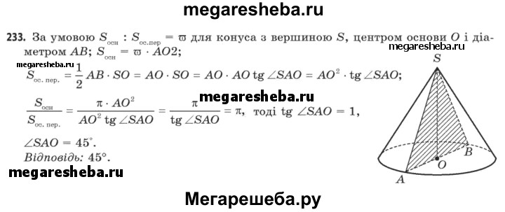 Подробный решебник (ГДЗ) по Математике за 11 (одиннадцатый) класс - готовый ответ Номера задач - 233. Авторы учебника: Афанасьєва, Бродський, Павлов, Сліпенко. Издательство: Украина 2015.