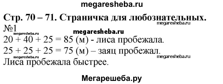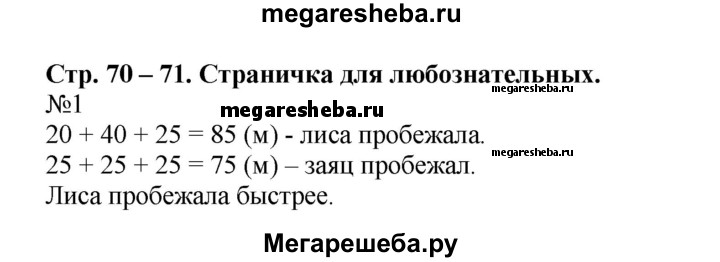 Подробный решебник (ГДЗ) по Математике за 2 (второй) класс - готовый ответ часть 1 страницы 70-71 (70-71) - 1. Авторы учебника: Моро, Бантова, Бельтюкова. Издательство: Просвещение 2015-2025.