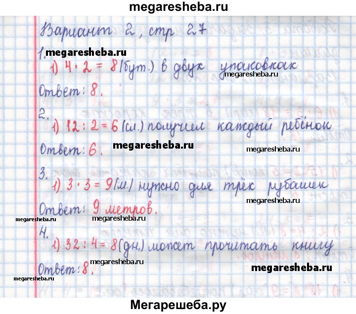 Подробный решебник (ГДЗ) по Математике за 2 (второй) класс тетрадь для контрольных работ - готовый ответ страница - 27. Авторы учебника: Рудницкая, Юдачёва. Издательство: Вентана-граф 2020.