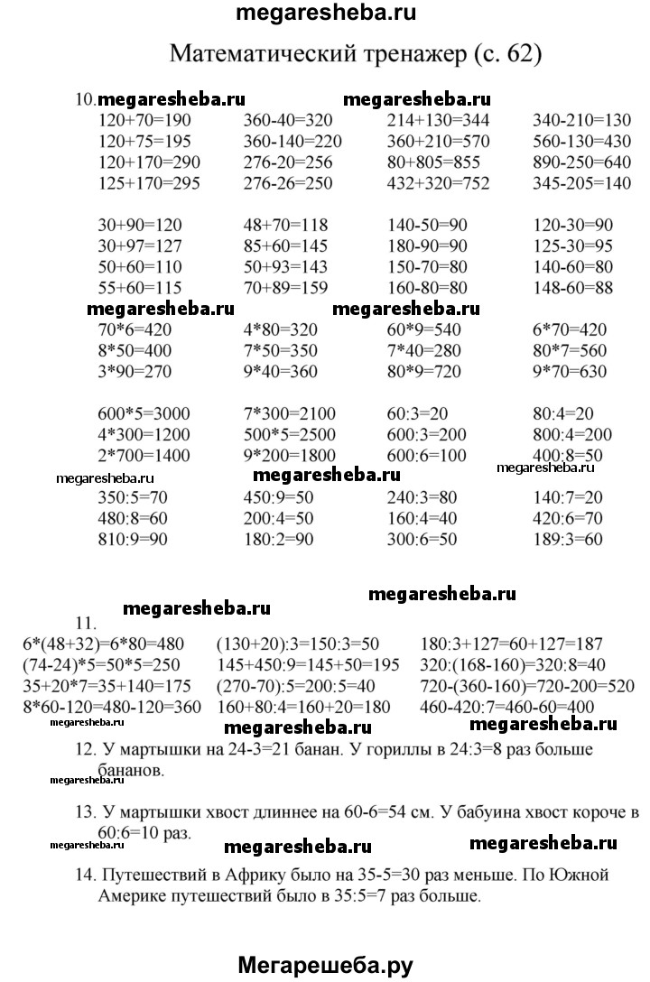 Подробный решебник (ГДЗ) по Математике за 3 (третий) класс - готовый ответ часть 1. страница - 62. Авторы учебника: Башмаков, Нефедова. Издательство: Аст/Астрель 2013-2023.
