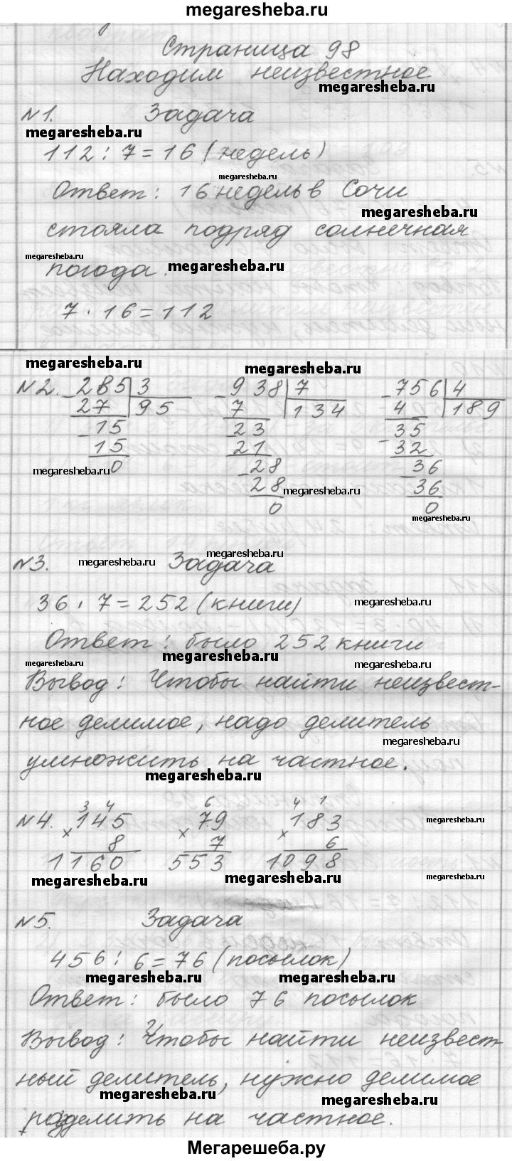 Подробный решебник (ГДЗ) по Математике за 3 (третий) класс - готовый ответ часть 2. страница - 98. Авторы учебника: Башмаков, Нефедова. Издательство: Аст/Астрель 2013-2023.
