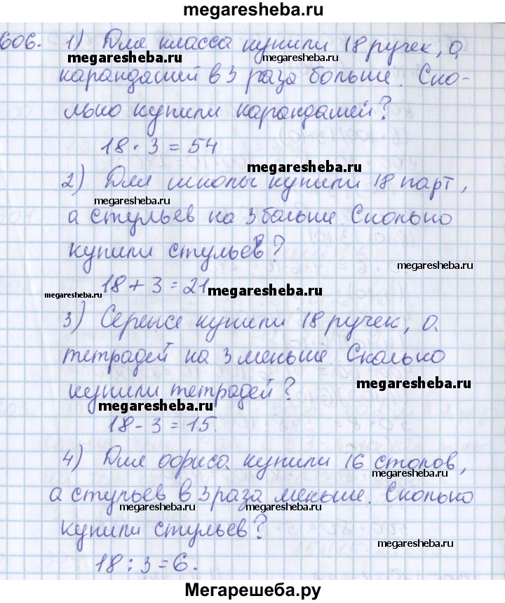 Подробный решебник (ГДЗ) по Математике за 3 (третий) класс - готовый ответ упражнение - 606. Авторы учебника: Давыдов, Горбов, Микулина. Издательство: Вита-Пресс 2018.
