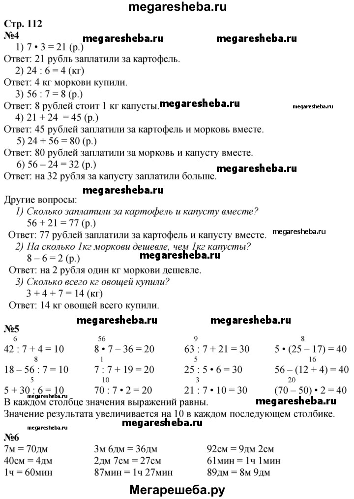 ГДЗ по математике 3 класс Дорофеев часть 1. страница - 112