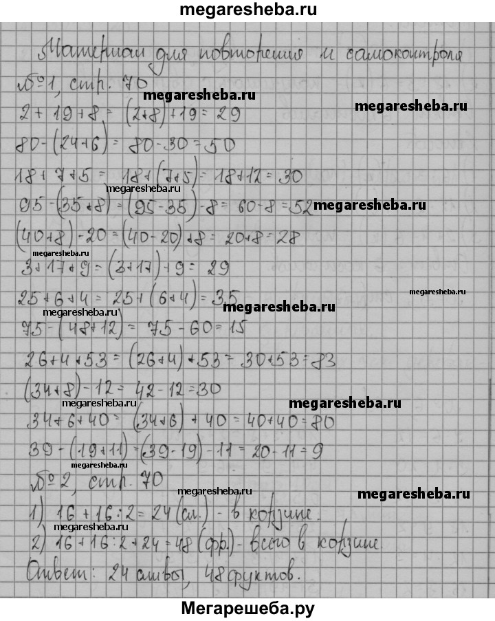 Подробный решебник (ГДЗ) по Математике за 3 (третий) класс - готовый ответ часть 1. страница - 70. Авторы учебника: Дорофеев, Миракова. Издательство: Просвещение 2015-2024.