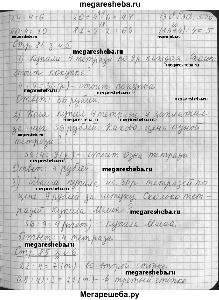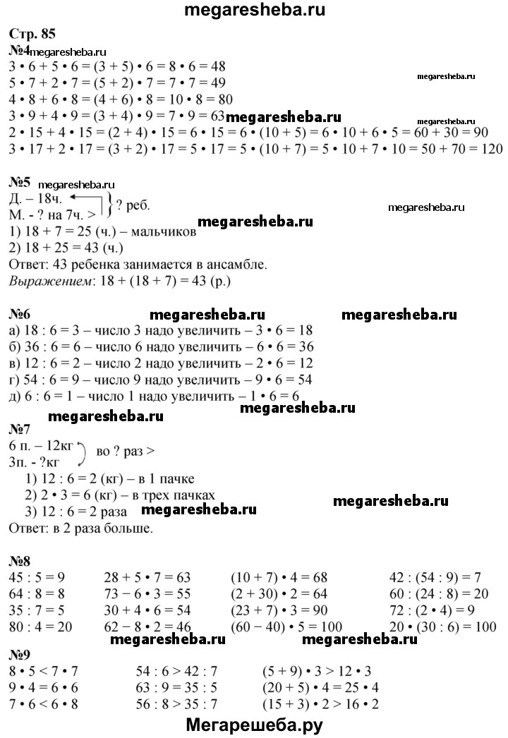 ГДЗ по математике 3 класс Дорофеев часть 1. страница - 85