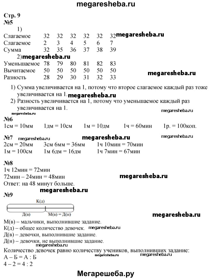 Подробный решебник (ГДЗ) по Математике за 3 (третий) класс - готовый ответ часть 1. страница - 9. Авторы учебника: Дорофеев, Миракова. Издательство: Просвещение 2015-2024.