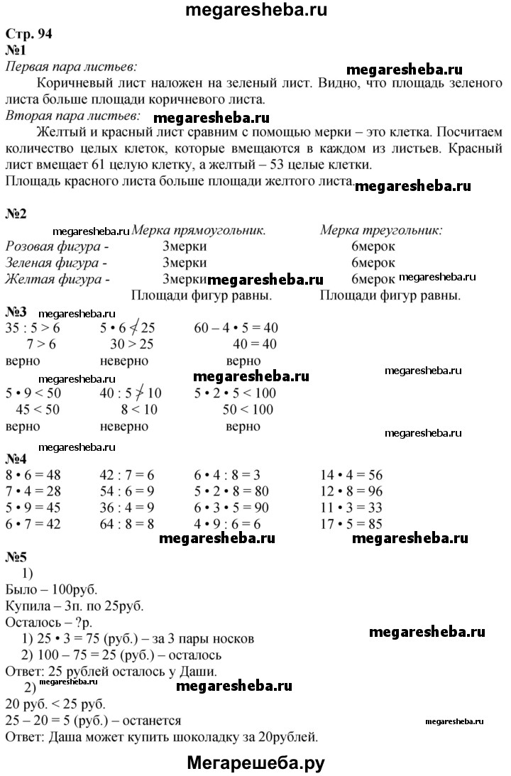 ГДЗ по математике 3 класс Дорофеев часть 1. страница - 94