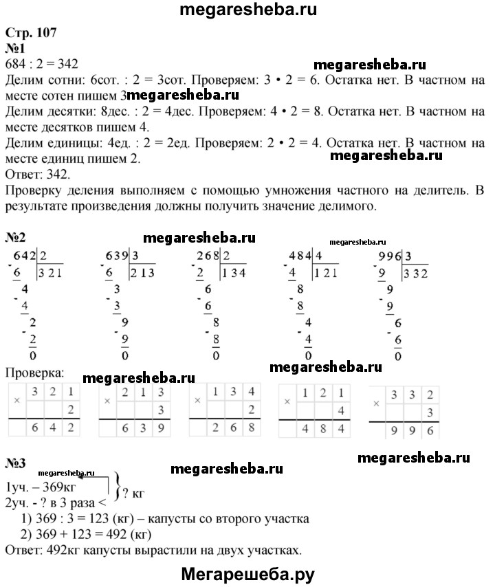 Подробный решебник (ГДЗ) по Математике за 3 (третий) класс - готовый ответ часть 2. страница - 107. Авторы учебника: Дорофеев, Миракова. Издательство: Просвещение 2015-2024.