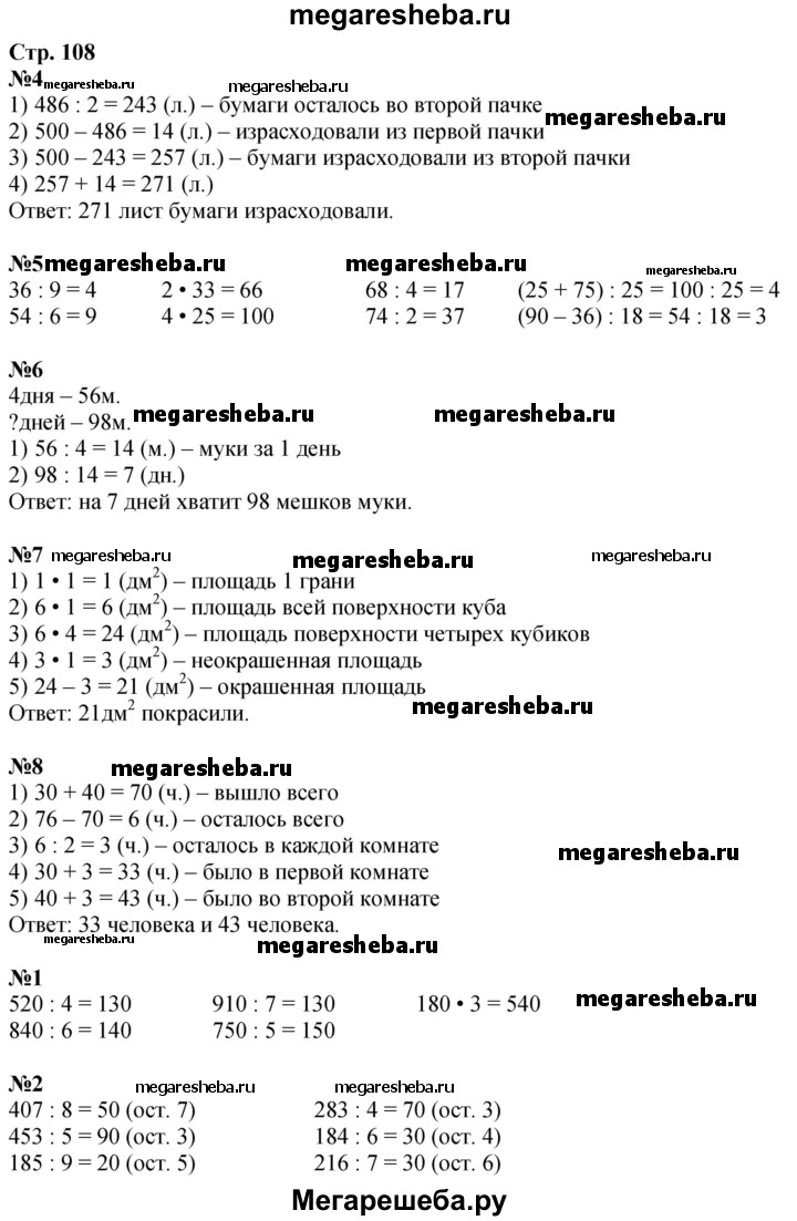 ГДЗ по математике 3 класс Дорофеев часть 2. страница - 108