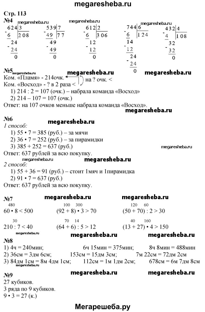 Подробный решебник (ГДЗ) по Математике за 3 (третий) класс - готовый ответ часть 2. страница - 113. Авторы учебника: Дорофеев, Миракова. Издательство: Просвещение 2015-2024.