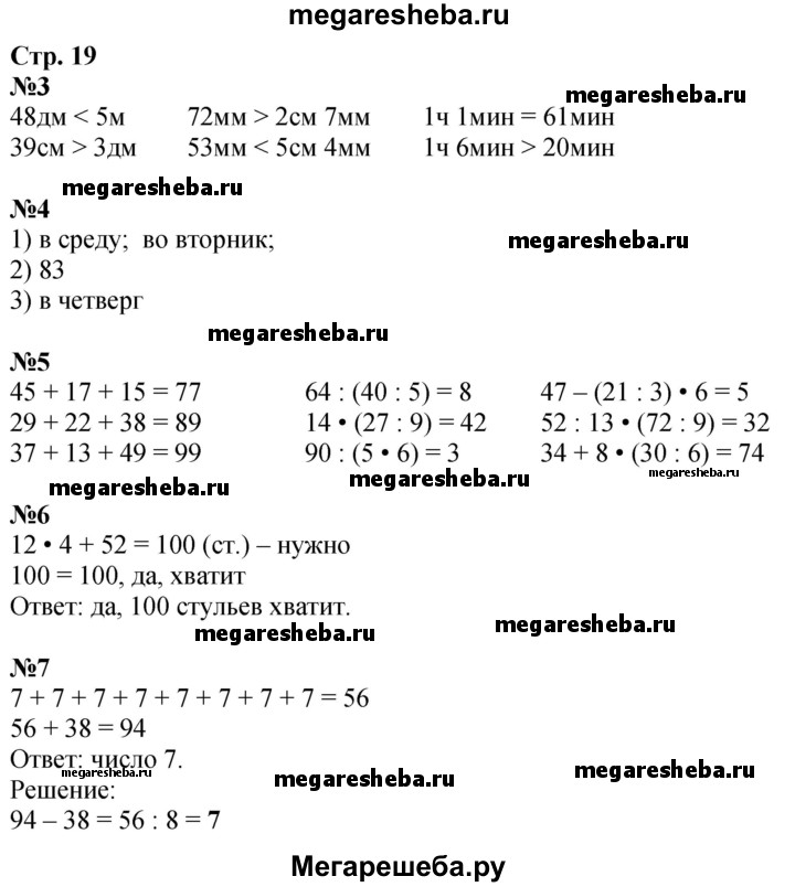 Подробный решебник (ГДЗ) по Математике за 3 (третий) класс - готовый ответ часть 2. страница - 19. Авторы учебника: Дорофеев, Миракова. Издательство: Просвещение 2015-2024.