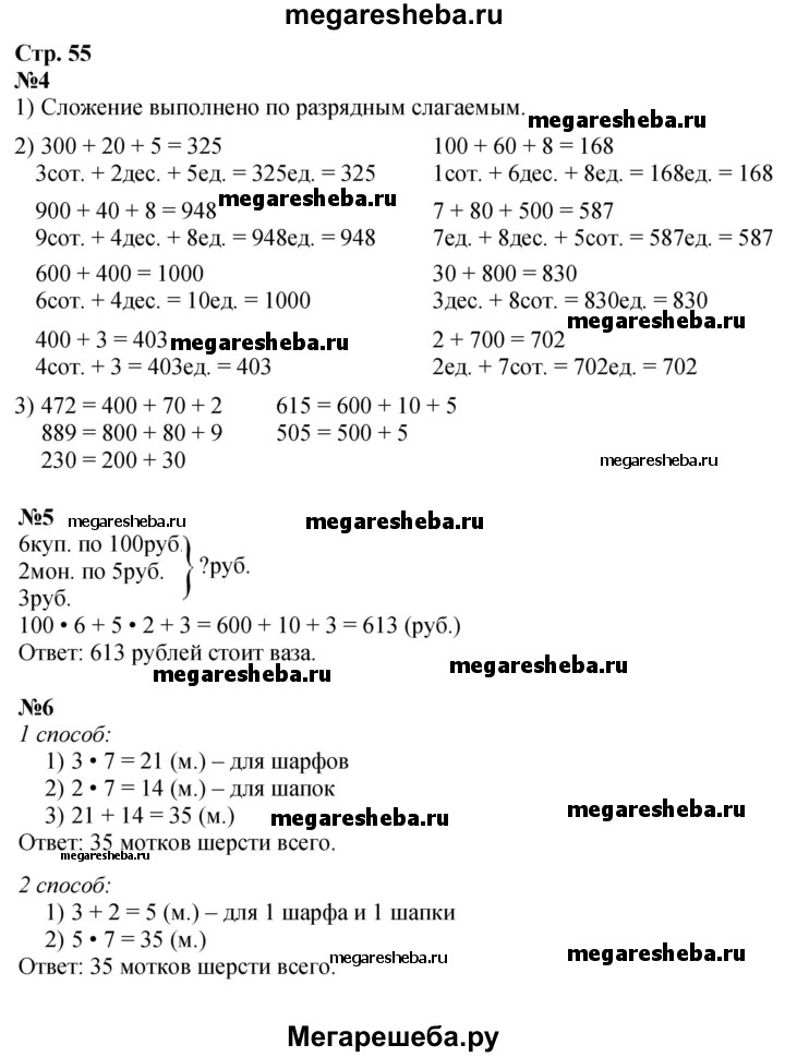 ГДЗ по математике 3 класс Дорофеев часть 2. страница - 55