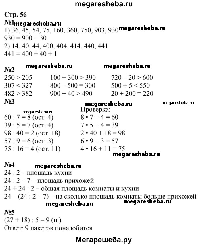 Подробный решебник (ГДЗ) по Математике за 3 (третий) класс - готовый ответ часть 2. страница - 56. Авторы учебника: Дорофеев, Миракова. Издательство: Просвещение 2015-2024.