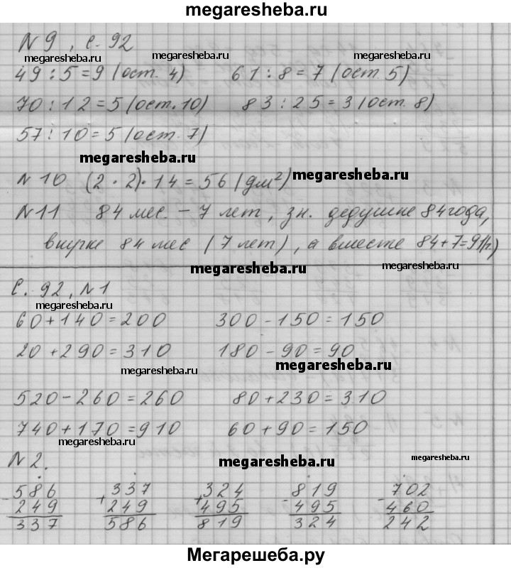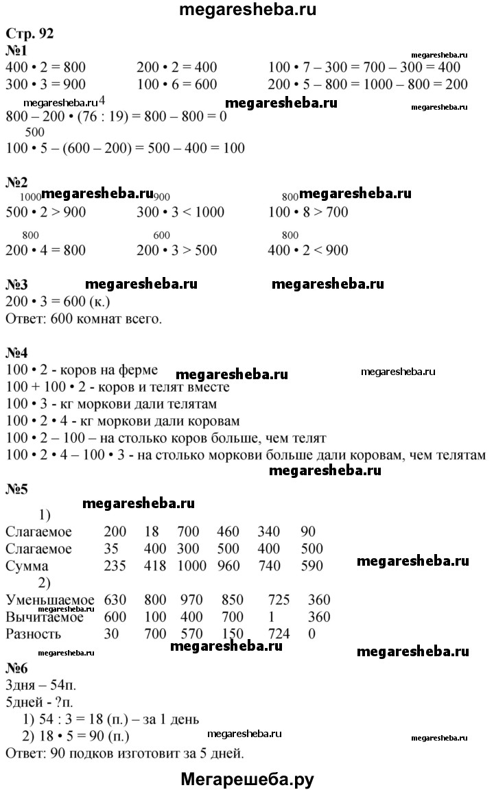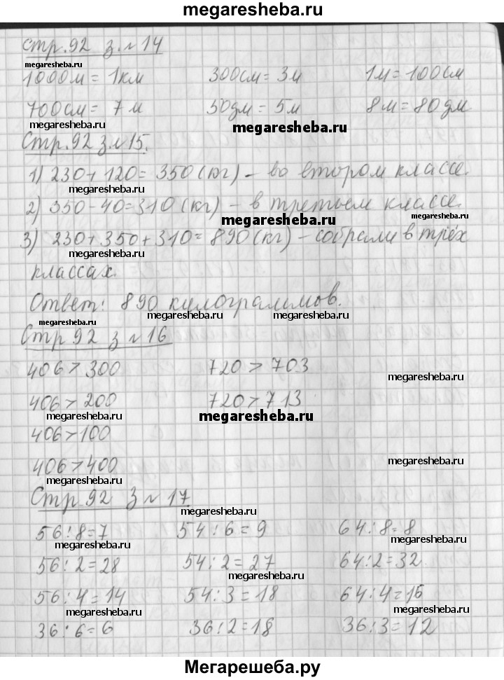 ГДЗ по математике 3 класс Дорофеев часть 2. страница - 92