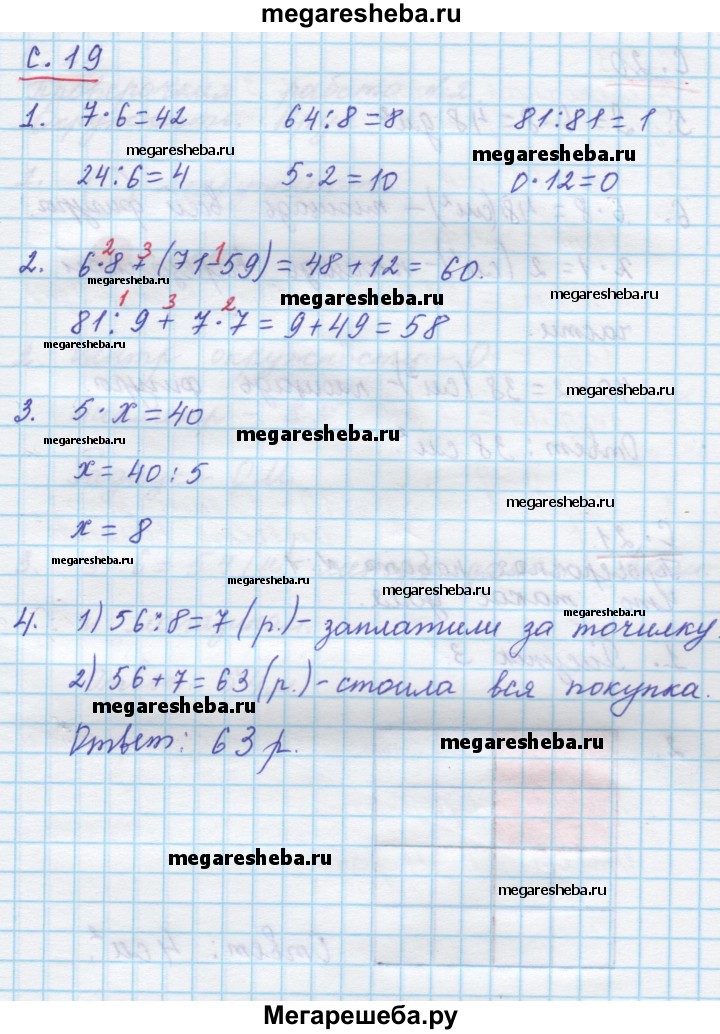 Подробный решебник (ГДЗ) по Математике за 3 (третий) класс контрольно-измерительные материалы - готовый ответ страница - 19. Авторы учебника: Глаголева, Волковская. Издательство: Просвещение 2018-2023.