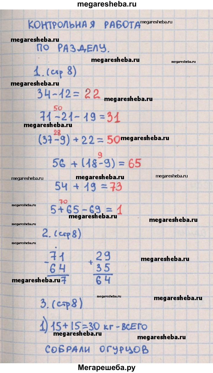 Подробный решебник (ГДЗ) по Математике за 3 (третий) класс контрольно-измерительные материалы - готовый ответ страница - 8. Авторы учебника: Глаголева, Волковская. Издательство: Просвещение 2018-2023.