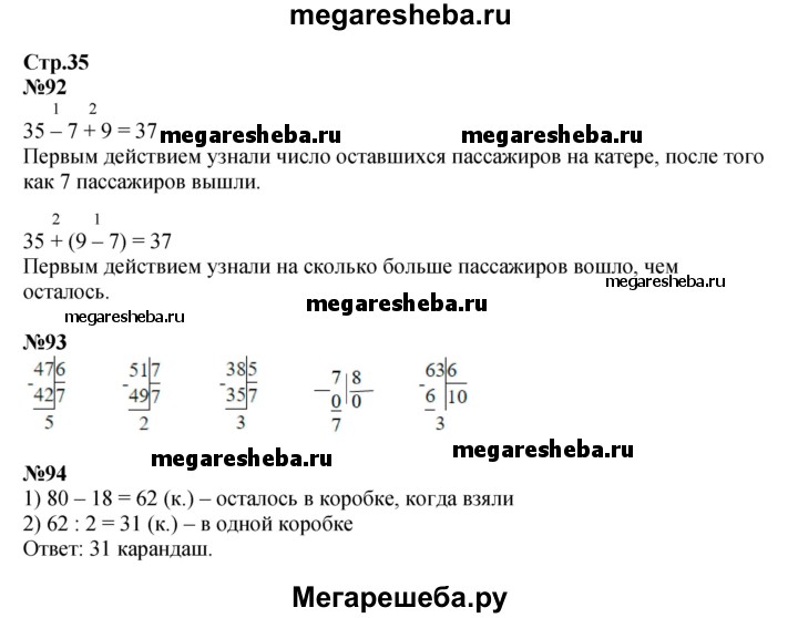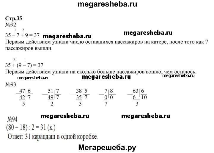 Подробный решебник (ГДЗ) по Математике за 3 (третий) класс рабочая тетрадь - готовый ответ часть 2. страница - 35. Авторы учебника: Моро, Волкова. Издательство: Просвещение 2016-2023.