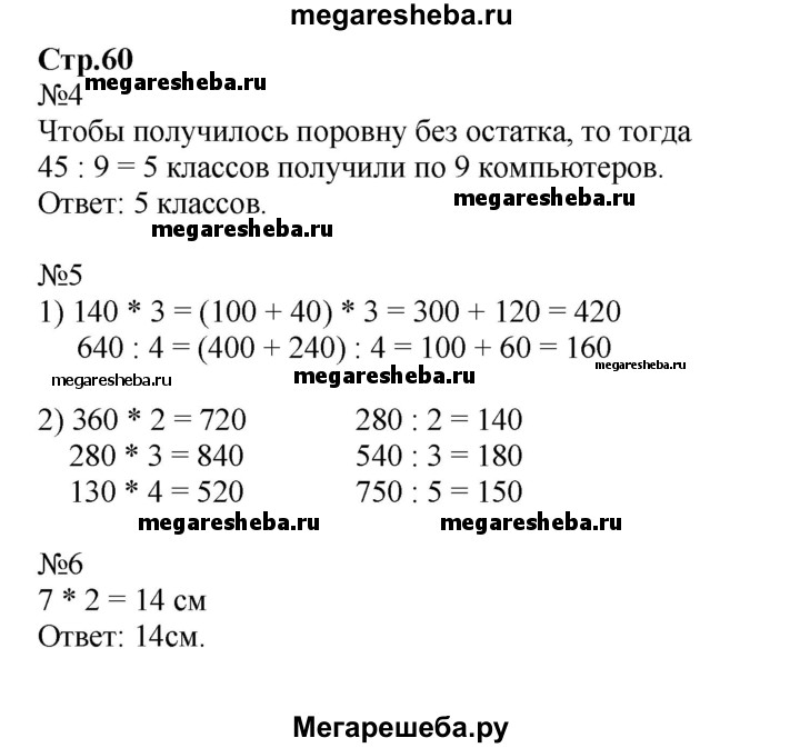 Подробный решебник (ГДЗ) по Математике за 3 (третий) класс рабочая тетрадь - готовый ответ часть 2. страница - 60. Авторы учебника: Моро, Волкова. Издательство: Просвещение 2016-2023.