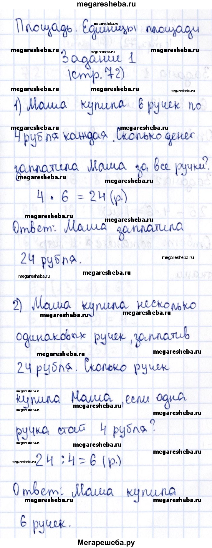 Подробный решебник (ГДЗ) по Математике за 3 (третий) класс - готовый ответ часть 1 страница 80 (72) - 1. Авторы учебника: Моро, Бантова, Бельтюкова. Издательство: Просвещение 2015-2025.