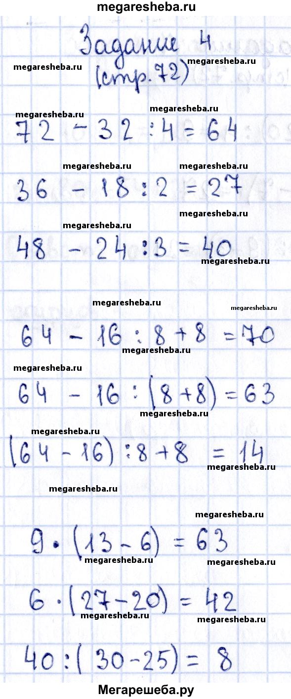 Подробный решебник (ГДЗ) по Математике за 3 (третий) класс - готовый ответ часть 1 страница 80 (72) - 4. Авторы учебника: Моро, Бантова, Бельтюкова. Издательство: Просвещение 2015-2025.