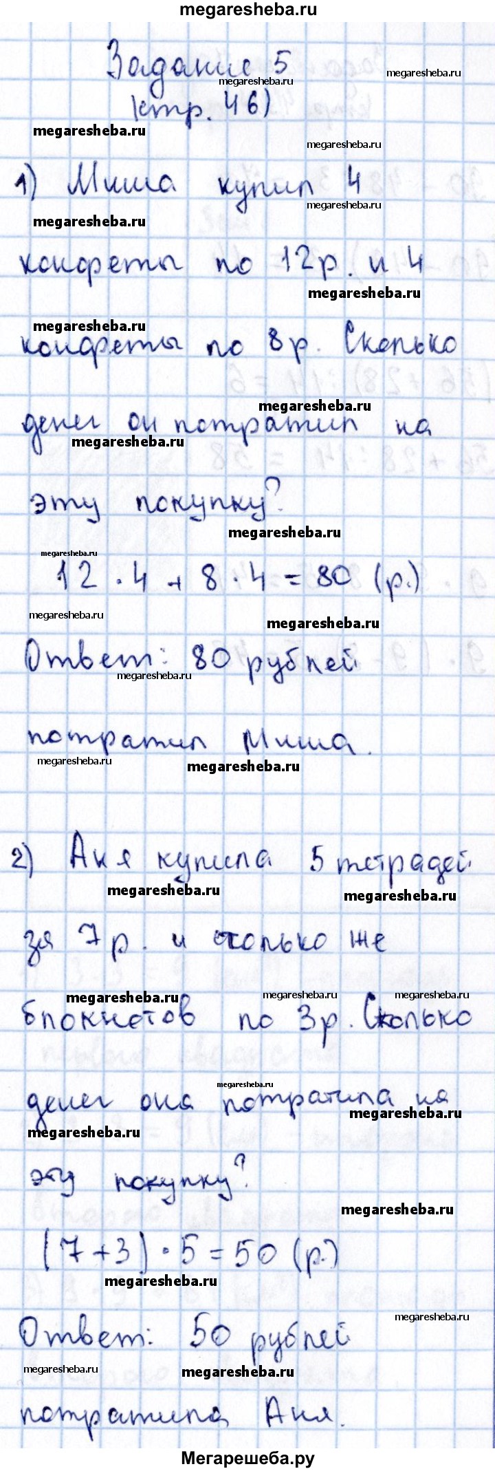 Подробный решебник (ГДЗ) по Математике за 3 (третий) класс - готовый ответ часть 2 страница 46 - 5. Авторы учебника: Моро, Бантова, Бельтюкова. Издательство: Просвещение 2015-2025.